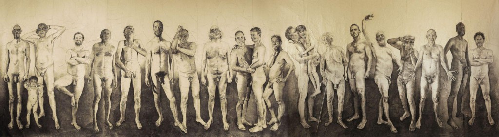 En cette œuvre monumentale de Mylène Besson une géographie corporelle inédite propose l’homme nu. L’anatomie au phallus joue de la faille espérée et des insignes des deux genres (féminin et masculin). Au spectacle se pose de manière inductive le « qui mange qui ? ». Cela n’oppose pas un désir de transformation et de métamorphose mais du complément au moment où la fixité de l’identité masculine s’établit. Et ce, par l’adjonction d’une « greffe » qui ouvre au partage.