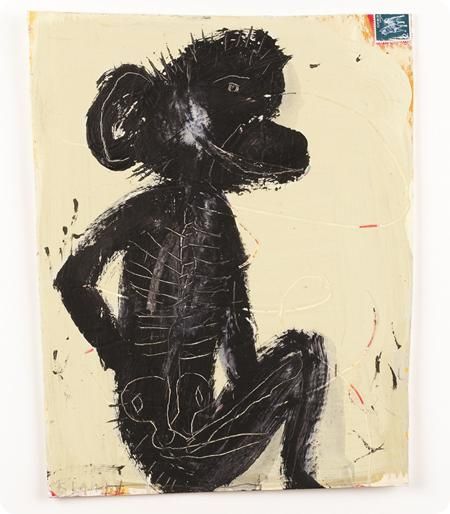 L’oeuvre se rattache aux arts premiers et n’est pas sans rappeler sur un plan pictural l’approche d’un Beckett.
