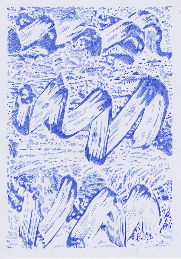 Mais dans son travail artistique et ses encres sur papier, tout est possible même si a priori on ne voit que du bleu.