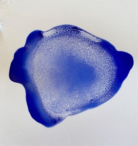 Chez la plasticienne, le bleu réclame la lumière de l’existence. Il est comme cette dernière opaque, mais par son redoublement la transparence suit. Son injonction emporte même si son support reste parfois apparent.