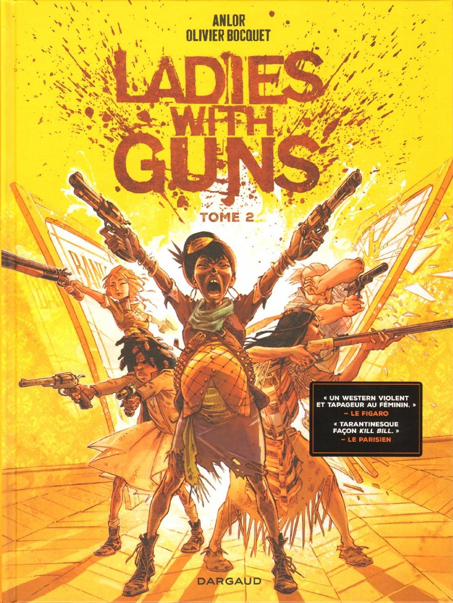 Olivier Bocquet (scénario), Anlor (dessin) & Elvire de Cock (couleur), Ladies with guns – tome 2, Dargaud, septembre 2022, 64 p. – 16,50€.