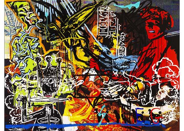 Telles des fresques murales, ses œuvres s’articulent autour de Freud, Moïse et un improbable jeu de mots autour du caniche préféré du maître de la psychanalyse. Son travail renvoie discrètement aux origines de l’art, en convoquant tous azimuts bon nombre de références artistiques, des bas-reliefs égyptiens à Andy Warhol.