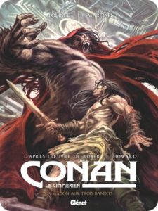 Patrice Louinet (scénario adapté de l’œuvre de Robert E. Howard) & Paolo Martinello (dessin et couleur), Conan le Cimmérien – t.10 : La Maison aux trois bandits, Glénat, coll. « Conan le Cimmérien », septembre 2020, 80 p. – 14,95 €.