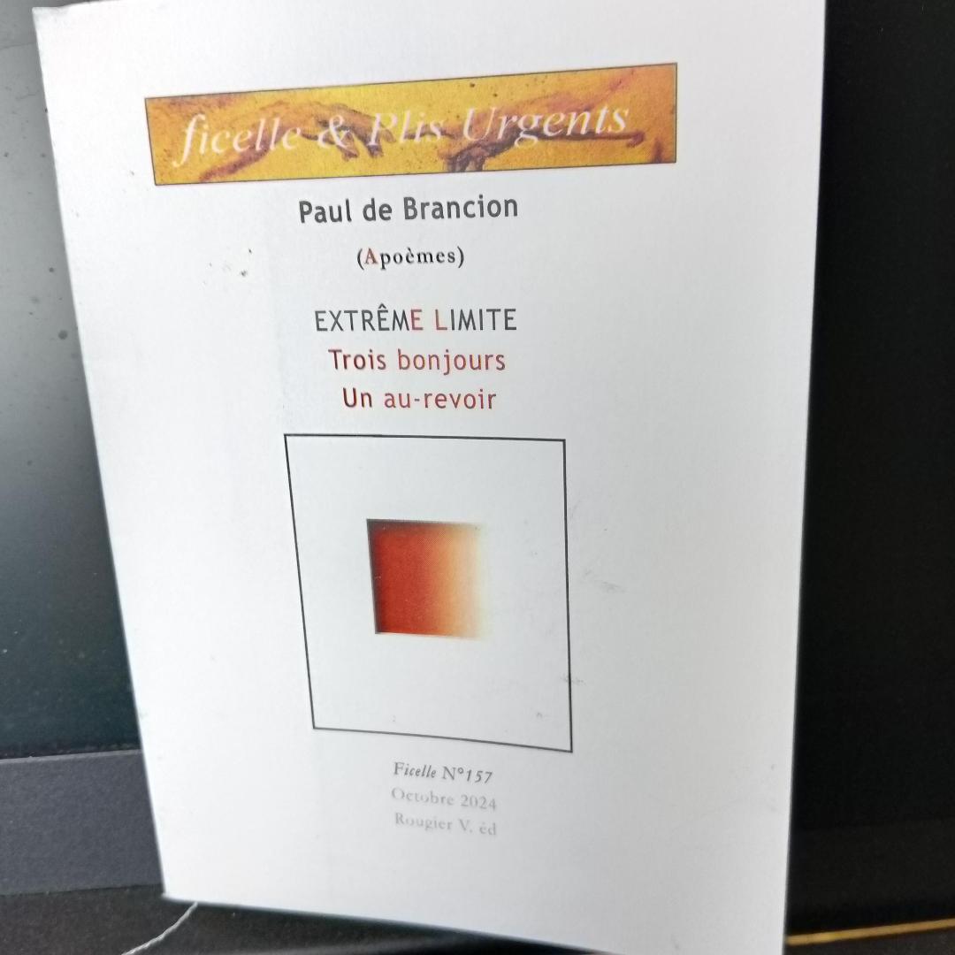 Paul de Brancion, Extrême Limite – trois bonjours Un au-revoir, Atelier Vincent Rougier, coll. Ficelle n°157, 2024, Soligny la Trappe, 2024, non paginé – 1300€.