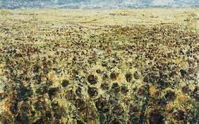 Désormais surgissent des paysages champêtres découpés en diptyques ou triptyques et déserts, figés dans une lumière étrange. Des champs de coquelicots ou de tournesols évoquent la nature mais de manière oppressante qui subjugue et inquiète à la fois.