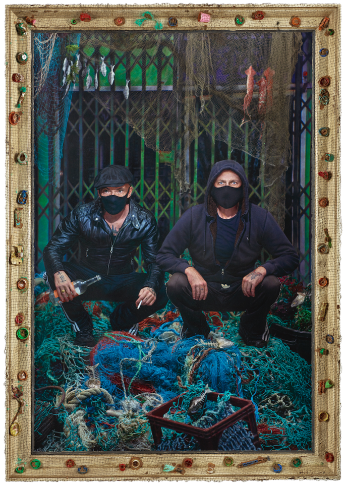 Existe une courte série en hommage à l’Ukraine. « La Liberté » ou « La Guerre du blé » mettent en scène avec pudeur de jeunes Ukrainiens pleurant l’innocence et la paix perdues. Face à eux, un autoportrait masqué des artistes posant accroupis invite à veiller ensemble un univers en pleine déliquescence.