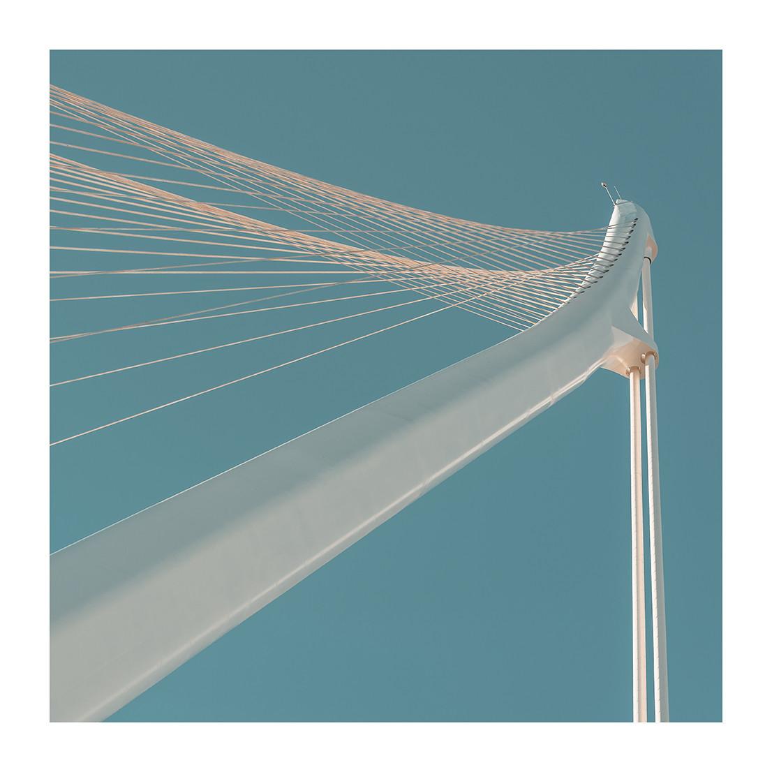 De cette harpe géante symbole d’harmonie, D’Ambrosio renvoie à une vision bien plus intérieure que géographique, là où la construction humaine ramène à des éléments essentiels par-delà la technique inhérente à la construction du pont comme à celle de telles photographie.