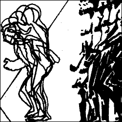 A travers les formes conçues pour les souligner, celles-ci jouent à cache-cache non en un pur rapport formel mais de sens. Objets et personnages sont rattrapés par l’ombre comme ils sont trempés de lumière. Il convient d’accepter cette pluie nourricière puisqu’elle est substance et nudité. Mais aussi mouvement au sein même de la fixité.