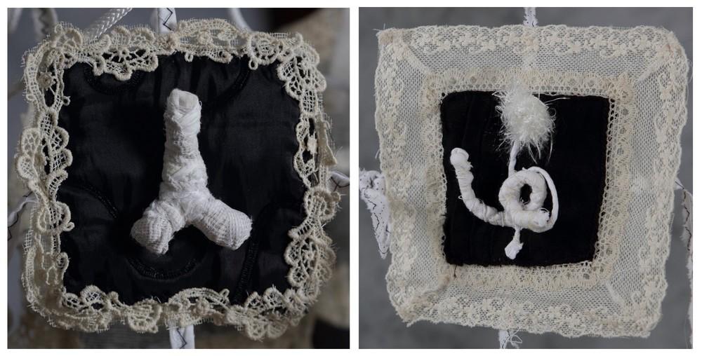 Les sexes épinglés, dressés, emmitouflés et à l’esprit aveugle réinventent une humanité « blanche » qui accouche sa chimère. L’artiste fait penser à ces femmes Mayas qui créent d’étranges poupées faites de divers morceaux. Mais les siennes sortent des traditions. Elles sont voluptueuses, fantaisistes et soulèvent de nombreuses questions au sujet de la féminité, de la masculinité et des transgenres.