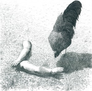 La coque du scarabée humain éclate et l’humaine phalène se brûle à la lumière. Une mélancolie devient le pur sodium d’un crane obèse : en a-t-il fini avec les larmes bien trempées ? Rien n’est sûr là où des ailes plus que des stèles s’ébrouent entre le noir et le blanc.
