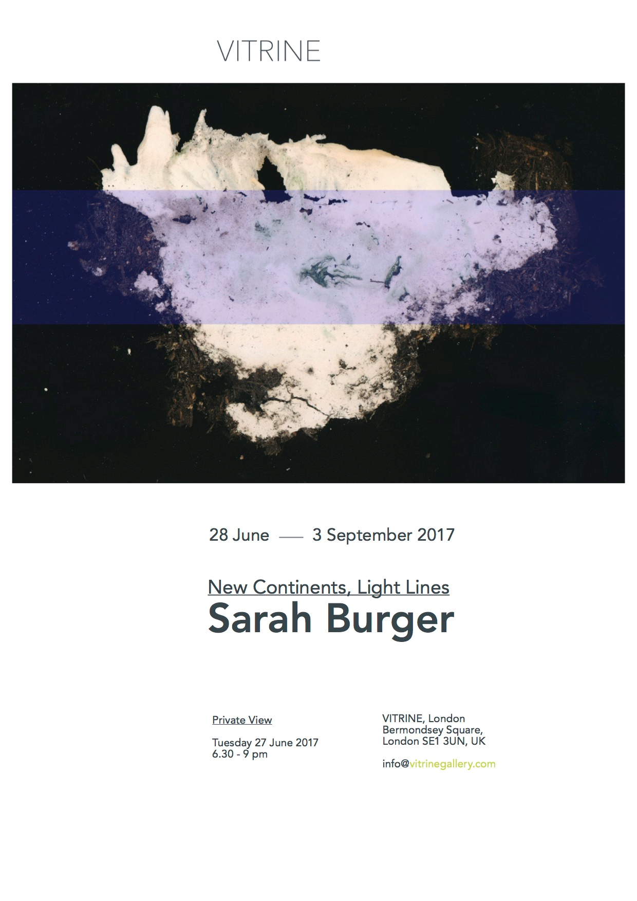 Sarah Burger, New continents, light lines, Galerie La Vitrine, Londres, vernissage le 27 juin et exposition jusqu’au 3 septembre 2017.