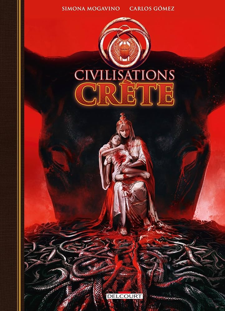 Simona Mogavino (scénario), Carlos Gómez (dessin), Lorenzo Pieri & Luca Saponti (couleur), Civilisations – Crète, Delcourt, coll. « Histoire & Histoires », septembre 2024, 128 p. – 29,95 €.