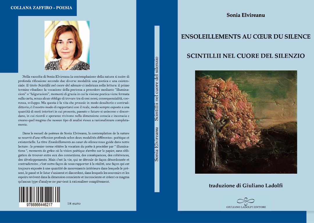 Sonia Elvireanu, Ensoleillements au coeur du Silence – Scintilli nel cuore del Silenzio, Traduction de Giuliano Ladolfi, Giuliano Ladolfi Editore, Borgomanero No, 2022, 262 p.- 18,00 €.