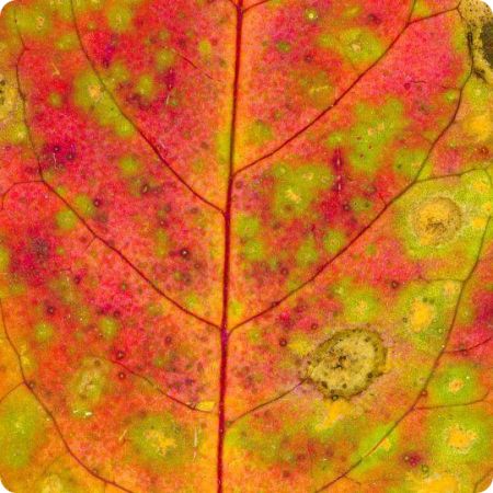 La série se décline à l’aide d’un scanner sur lequel l’artiste place des feuilles d’automne donc en fin de cycle. Elles sont choisies volontairement sans attention particulière. Le numérisation révèle un microcosme harmonieux dans chaque feuille.