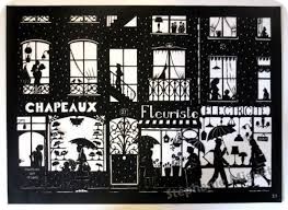 Stéphanie Miguet installe à Alter-Art ses papiers découpés. Elle y habille la vitrine, les murs de papiers, tableaux, motifs ornementaux.