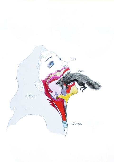L’ensemble des ressources animalières fait du corps un puits des fous, une cour des miracles. Qui donc possède la clé de cette ménagerie sinon l’artiste elle-même ? L’animal est associé organiquement et orgasmiquement aux douillettes courbures du corps spatialement disposé en geôle et géode. L’artiste trouve licence à projeter ses fantasmes mais surtout à placer le spectateur face à un corps dont le biologisme se double de ce qui l’habite.