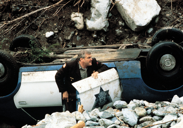 Au moins peut-on constater que l’ancien soldat, malmené par les serviteurs de la loi, a assez peu le choix : être primaire mais droit, patriote jusqu’au bout du poignard de survie, orienté et hanté ˗ pour ne pas dire : prédéterminé – par ses nombreux traumatismes (cf. la scène où il revit les tortures Viêt-Cong quand on veut le forcer au début du film à être propre), sa situation ne peut-être qu’une déclaration de guerre. Un casus belli ne pouvant que le pousser à laisser éclater au grand jour la rage qui l’habite et donc à incarner le refoulé de ses compatriotes qui, à l’instar du shérif et de ses hommes le rejetant, l’ont transformé à son corps défendant en paria. La communauté, pour sa part, toute à son « oubli volontaire », refoule l’idée de guerre, ne voyant ˗ parce qu’elle le veut bien ˗ dans le déploiement massif des forces (la garde nationale puis les militaires) destinées à traquer le fugitif qu’une élémentaire opération de « maintien de l’ordre ». Critique de la société de communication et du reportage télé, T. Kotcheff insère d’ailleurs dans le décor, à titre de normativité, les journalistes des premières chaînes d’information en continu, venus capter la légende. Tout cela ne saurait être si grave.