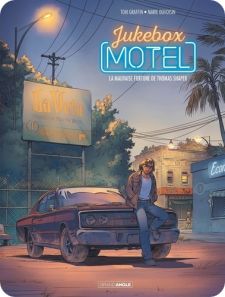 Tom Graffin (scénario) & Marie Duvoisin (dessin & couleurs), Jukebox Motel – t.01 : La mauvaise fortune de Thomas Shaper, Bamboo, coll. « Grand Angle », mai 2021, 56 p. – 14, 90 €.