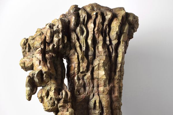 Ursula von Rydingsvard depuis les années 70 crée souvent des structures monumentales d’aspect biomorphique. Cette statuaire fait penser à des sortes des concrétions volcanique ou sédimentaires. Placée dans la nature, l’œuvre rivalise avec cette dernière. Mais l’espace urbain lui sied tout autant comme ce fut le cas au Giardino della Marinessa à Venise.