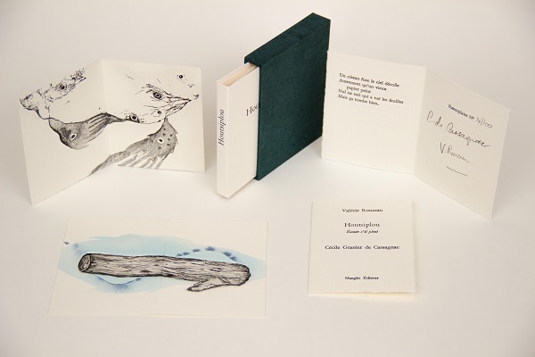 Cécile Granier de Cassagnac provoque, en particulier par le dessin, l’insurrection d’un bestaire selon diverses modalités d’assemblages pour donner consistance à des êtres hybrides : insectes bizarres, volatiles aux pieds enflés, êtres-écorces ou à trois jambes et bec de canard. Le banal de l’apparence est transformé selon la belle hypothèse d’un art à la fois de veille volontairement bancale et d’humour. Il est bâti pour introduire de la magie dans une société qui en manque. Valérie Rouzeau y répond aussi habilement que naturellement par des choses vues où tout le monde goutte: « l’eau frémit dans la casserole » et – entre autres – « un petit gamin soulève la bâche plastique de sa poussette / pour viser sa grande sœur au pistolet ». Qu’on se rassure : il est à eau.