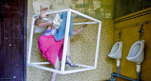 Souvent cela tourne autour d’un personnage fictif mais toujours en complicité avec les gens et le monde. La fée Utopia (dont Mimivry fut la grande soeur) reste – dans son cube ou en dehors – un de ces personnages magiques et fétiches. Elle se retrouve à travers les différents genres que Véronique Hubert utilise. La fête dionysiaque et sacrificielle peut à ce titre prendre de multiples aspects. Elle ose la violence, le tragique mais tout autant le comique. Assomption ou descente aux enfers, des ouvertures effectives détournent des morts que l’on se donne (ou qui nous sont données). Si Utopia n’existe pas, si elle demeure une “pure image”, elle peut tout oser. Quand l’artiste est sur le point de s’écrouler, la fée – quoique parfois sans illusions – la relève. Le show peut et doit continuer. Qu’importe si une telle fée pète et s’enivre pour chasser sa déprime.