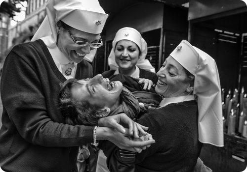 Le travail des volontaires de l’ « UNITALSI » est mis en évidence par celui de Vito Finocchiaro, guidé par une esthétique de la confrontation, d’un chemin à raconter par ses relations visuelles fortes et à différentes facettes.